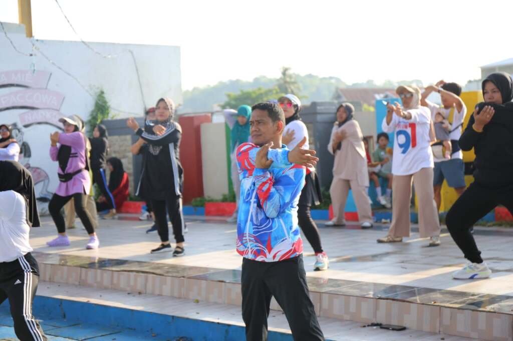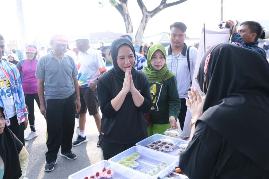 Selesai berkeliling, Habibi dan istrinya bergabung dalam sesi senam sehat, bersama ratusan warga yang memenuhi stadion sejak pagi. Semangat pagi itu semakin terasa saat Pjs. Bupati dan Ketua TP PKK mengunjungi seluruh lapak UMKM, membeli dan mencicipi beragam kuliner yang dijajakan. Tak satu pun stan yang dilewatkan, membawa sukacita bagi para pelaku UMKM karena dagangan mereka laris terjual.