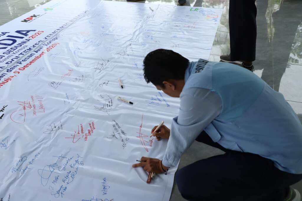 Kegiatan ini melibatkan seluruh civitas akademika Polkesmamuju, mulai dari unsur pimpinan, pejabat struktural, tenaga dosen, PLP, tenaga teknisi, petugas keamanan, cleaning service, hingga mahasiswa dari empat jurusan. Mereka memberikan tanda tangan serta pesan antikorupsi pada spanduk besar sebagai simbol komitmen kolektif dalam menolak segala bentuk tindak korupsi.